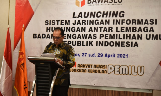 Bogor, Badan Pengawas Pemilihan Umum - Ketua Bawaslu Abhan mengesahkan peluncuran aplikasi Sistem Informasi Hubungan Antarlembaga Bawaslu (Si Jari Hubal). Aplikasi ini diharapkan bisa menjadi bagian pengadminitrasian modern sekaligus pintu masuk koordinasi dan sinkronisasi dengan pihak eksternal yang tersaji kepada publik.